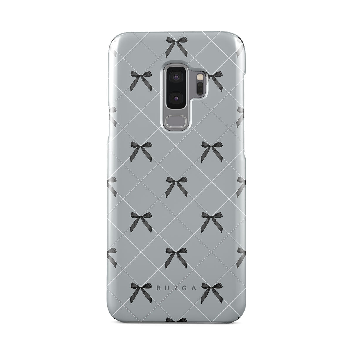 A subtle hint to a world of dance and soft melodies. Crisscrossing bows over a muted gray tone capture the flirtatious essence of the coquette-core aesthetic. Playful and sweet, our Coquette Samsung Galaxy S9 Plus phone case design is perfect for those who find beauty in the details.