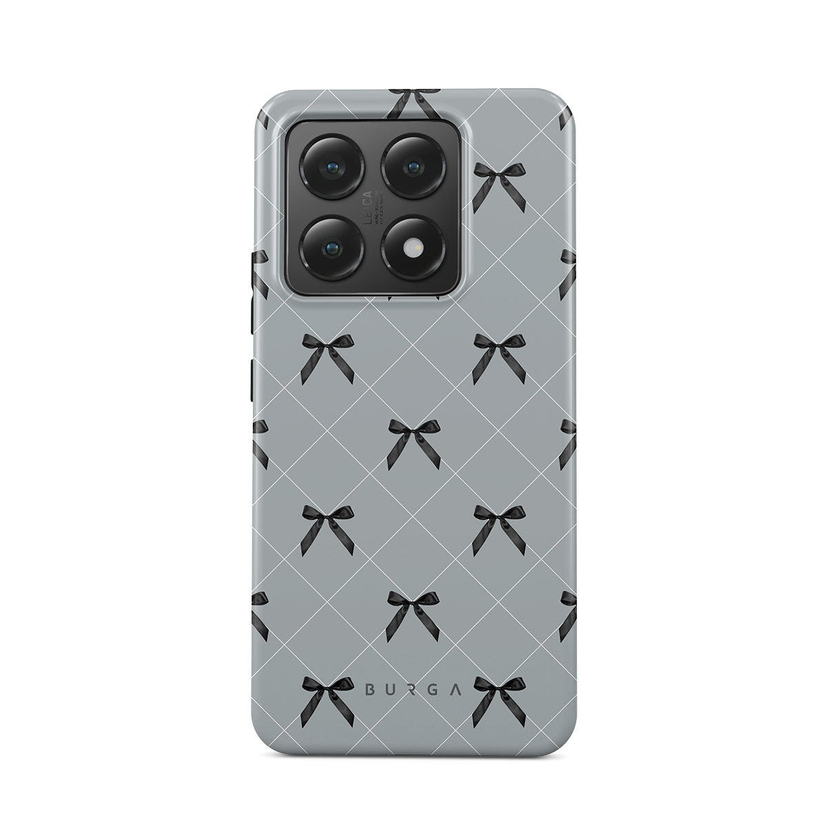 A subtle hint to a world of dance and soft melodies. Crisscrossing bows over a muted gray tone capture the flirtatious essence of the coquette-core aesthetic. Playful and sweet, our Coquette Xiaomi 14T phone case design is perfect for those who find beauty in the details.