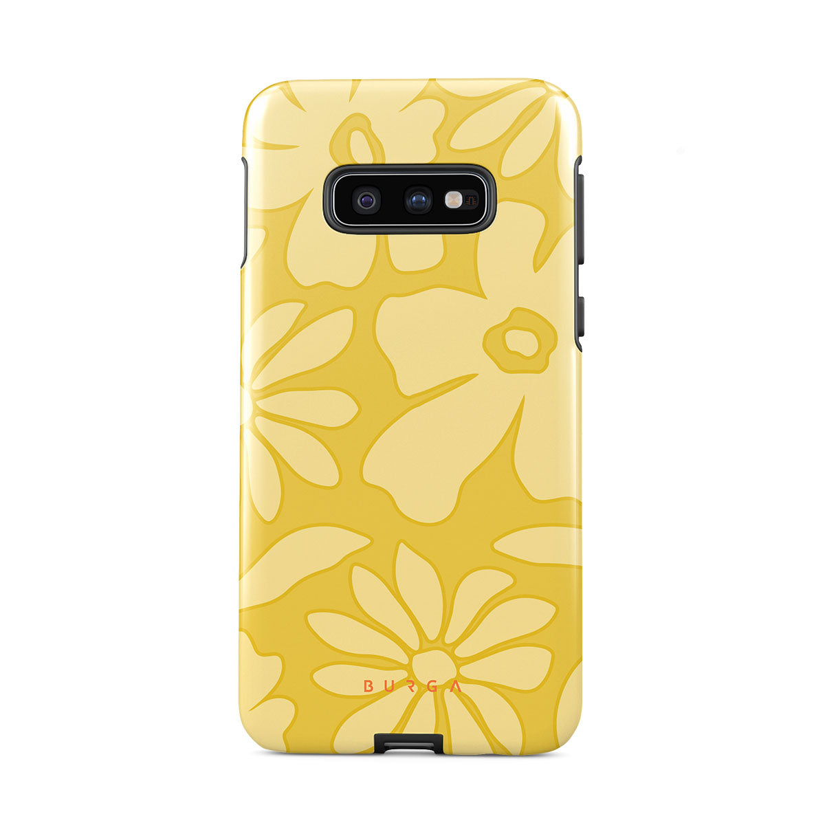 Our bright yellow Samsung Galaxy S10E phone case features bold, beautiful flowers that evoke a sense of nostalgia and happiness. This cheerful floral design captures the essence of joyful moments, making your device a reminder of sunny memories. Perfect for brightening up your day.