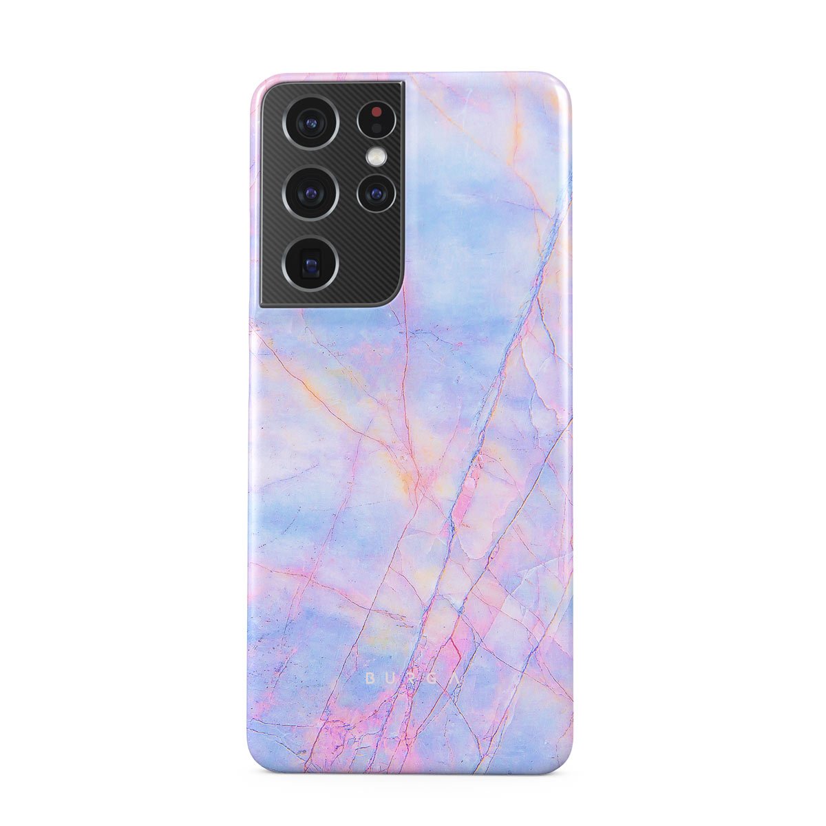 Sweet, fluffy, and dissolves so easily. Take a soft pastel Samsung Galaxy S21 Ultra phone case inspired by the cotton candy to remind you of the rides in the Ferris wheel. Do not let the delicate look deceive you, as this case still offers heavy-duty protection for your phone.