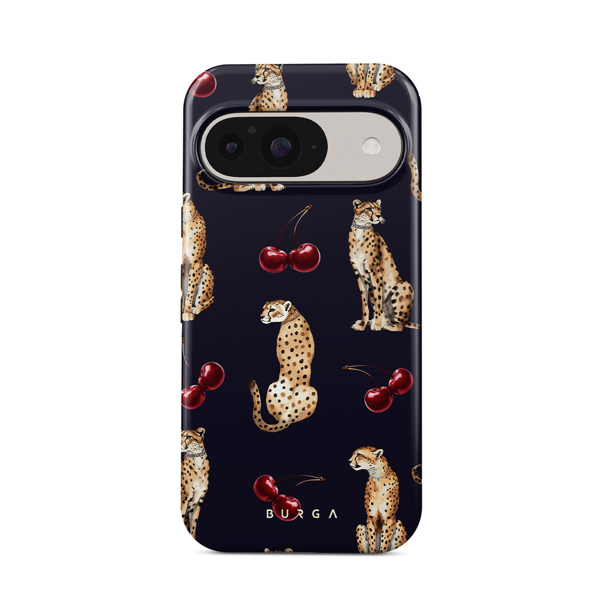 This design features: cheetah patterns, cheetahs, cherries
