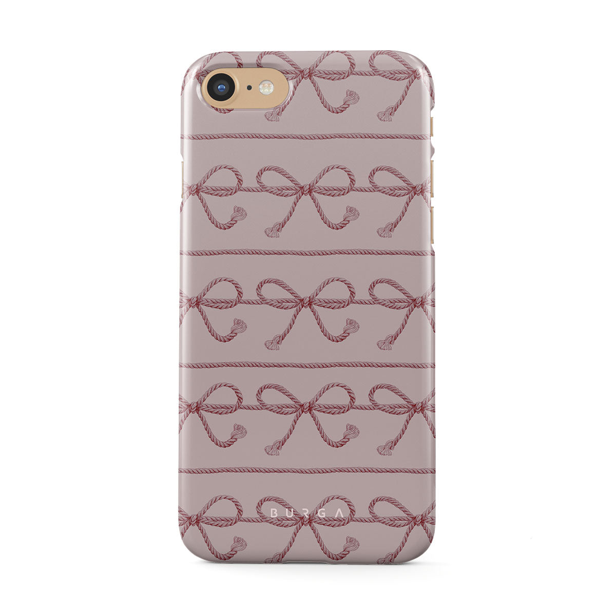 This design features: pink bows, pink background, ropes, playful pattern.