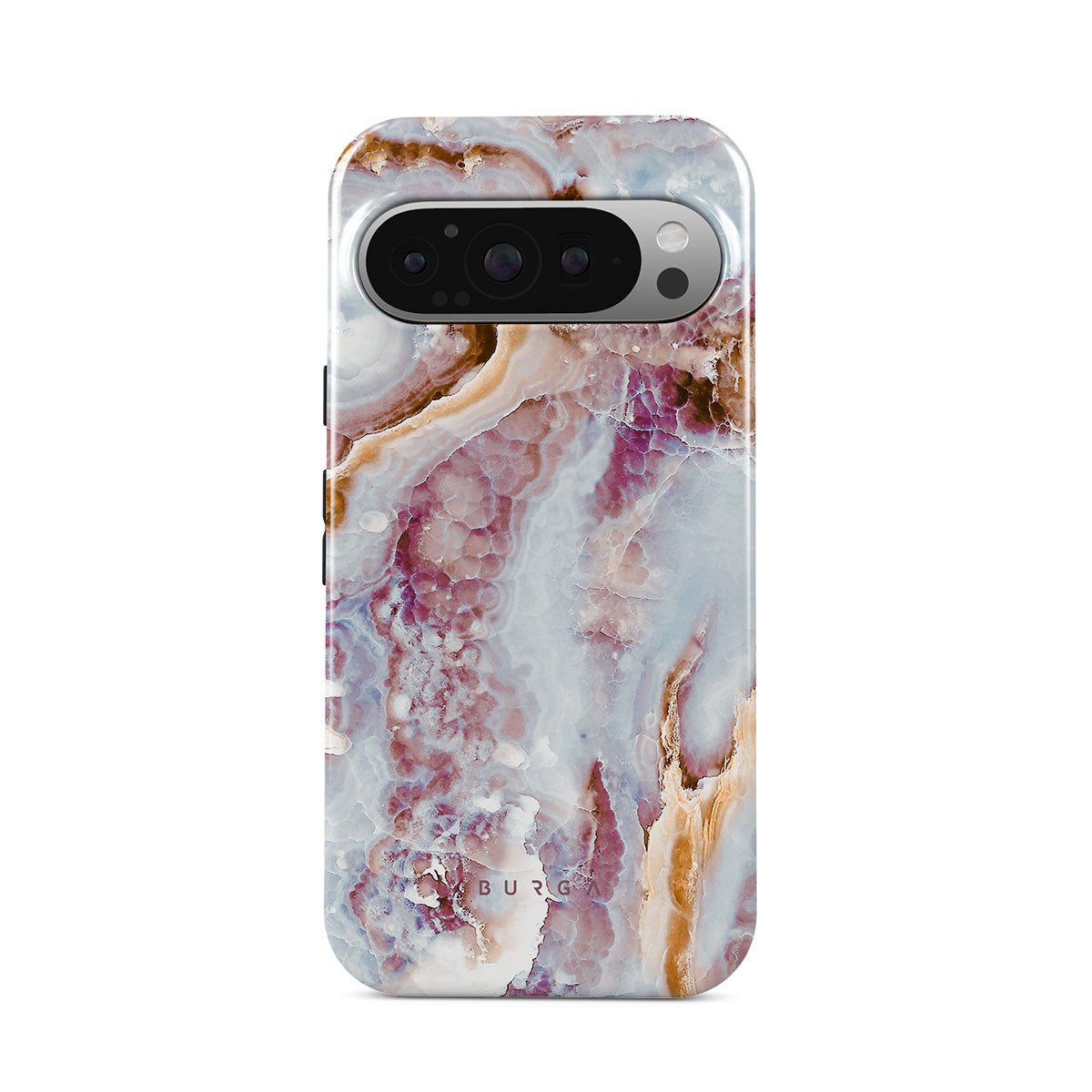 What frost can create on the surfaces is perfectly imperfect. The cute marble pattern of our hard-shell Google Pixel 9 Pro XL phone case inspired by the frozen leaves adds a splash of color in a dreamy blue background, becoming a beautiful part of anyone's style.