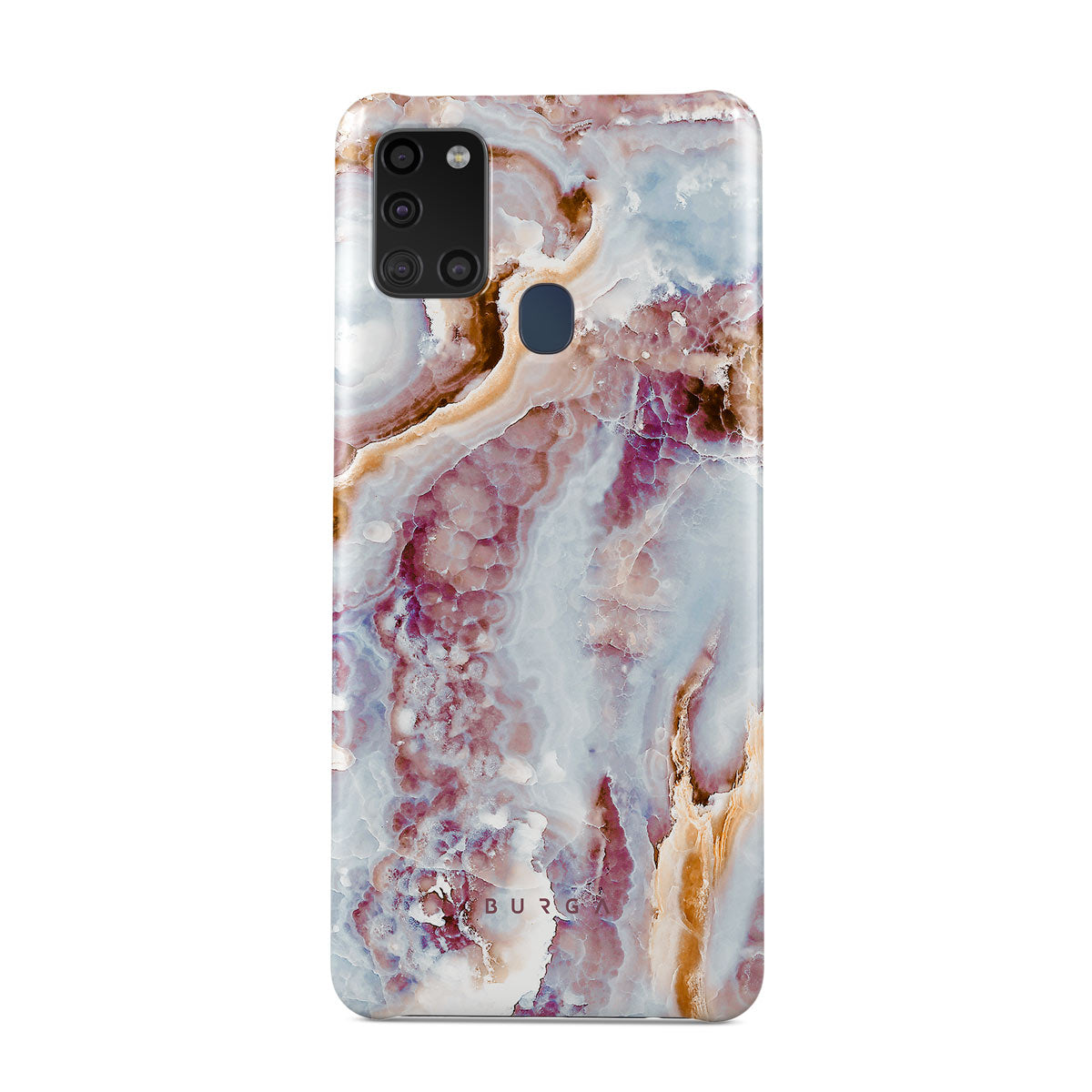 What frost can create on the surfaces is perfectly imperfect. The cute marble pattern of our hard-shell Samsung Galaxy A21s 4G phone case inspired by the frozen leaves adds a splash of color in a dreamy blue background, becoming a beautiful part of anyone's style.