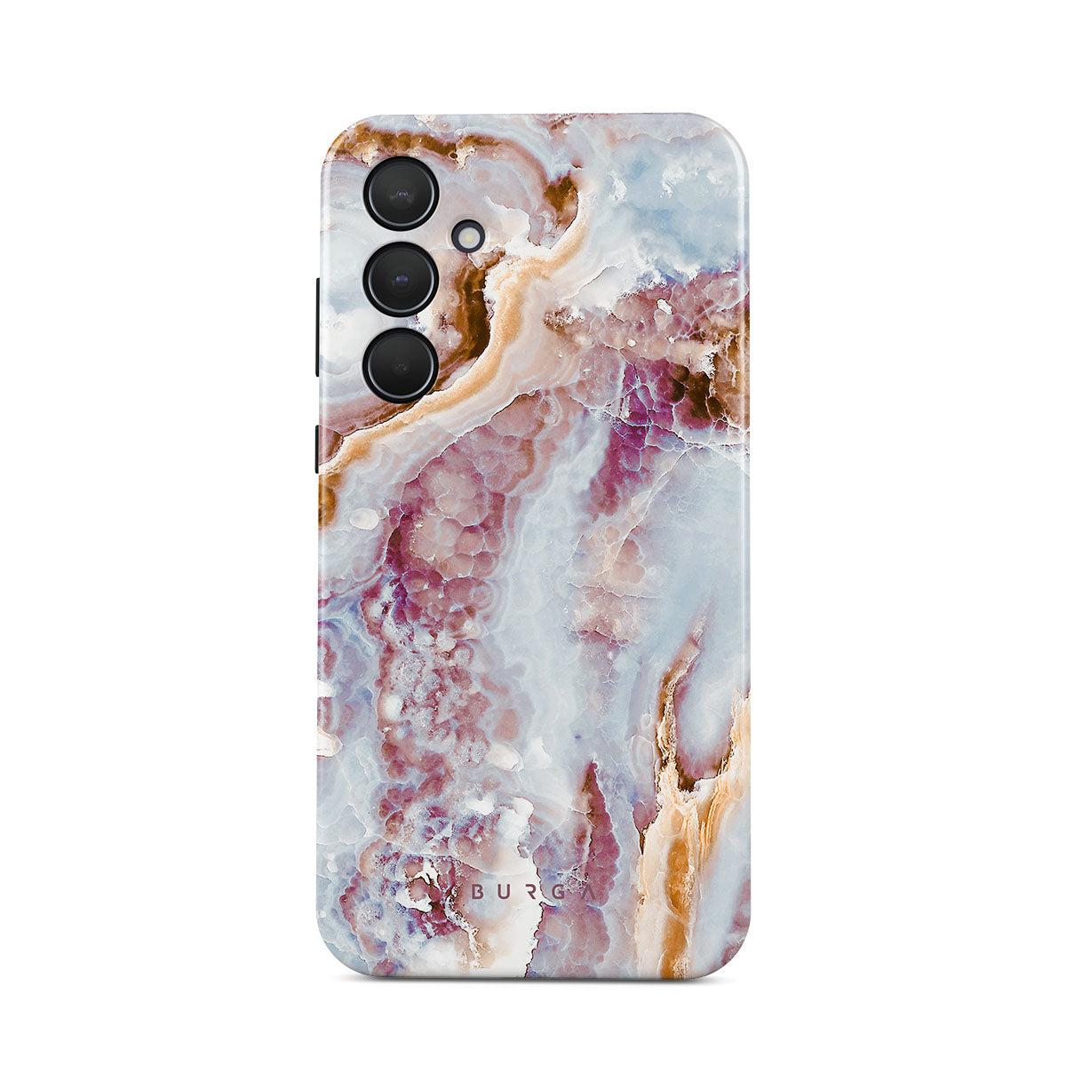 What frost can create on the surfaces is perfectly imperfect. The cute marble pattern of our hard-shell Samsung Galaxy A51 phone case inspired by the frozen leaves adds a splash of color in a dreamy blue background, becoming a beautiful part of anyone's style.
