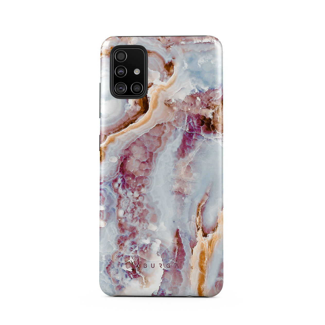 What frost can create on the surfaces is perfectly imperfect. The cute marble pattern of our hard-shell Samsung Galaxy A71 phone case inspired by the frozen leaves adds a splash of color in a dreamy blue background, becoming a beautiful part of anyone's style.