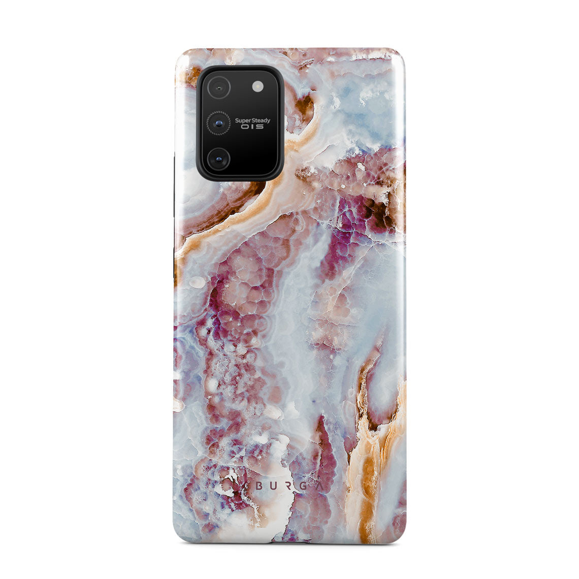 What frost can create on the surfaces is perfectly imperfect. The cute marble pattern of our hard-shell Samsung Galaxy S10 Lite phone case inspired by the frozen leaves adds a splash of color in a dreamy blue background, becoming a beautiful part of anyone's style.