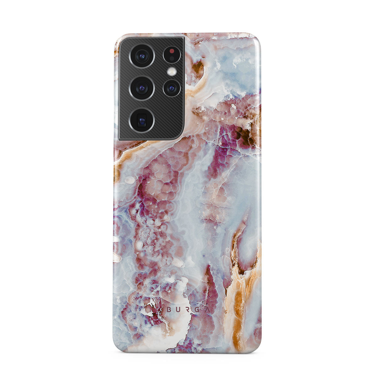What frost can create on the surfaces is perfectly imperfect. The cute marble pattern of our hard-shell Samsung Galaxy S21 Ultra phone case inspired by the frozen leaves adds a splash of color in a dreamy blue background, becoming a beautiful part of anyone's style.