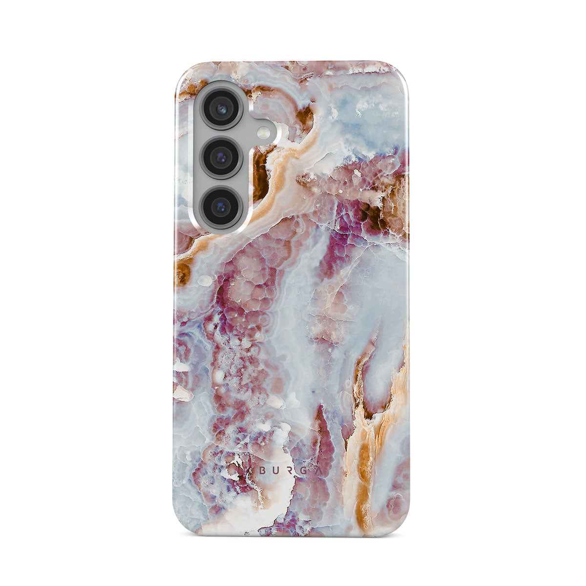 What frost can create on the surfaces is perfectly imperfect. The cute marble pattern of our hard-shell Samsung Galaxy S24 phone case inspired by the frozen leaves adds a splash of color in a dreamy blue background, becoming a beautiful part of anyone's style.