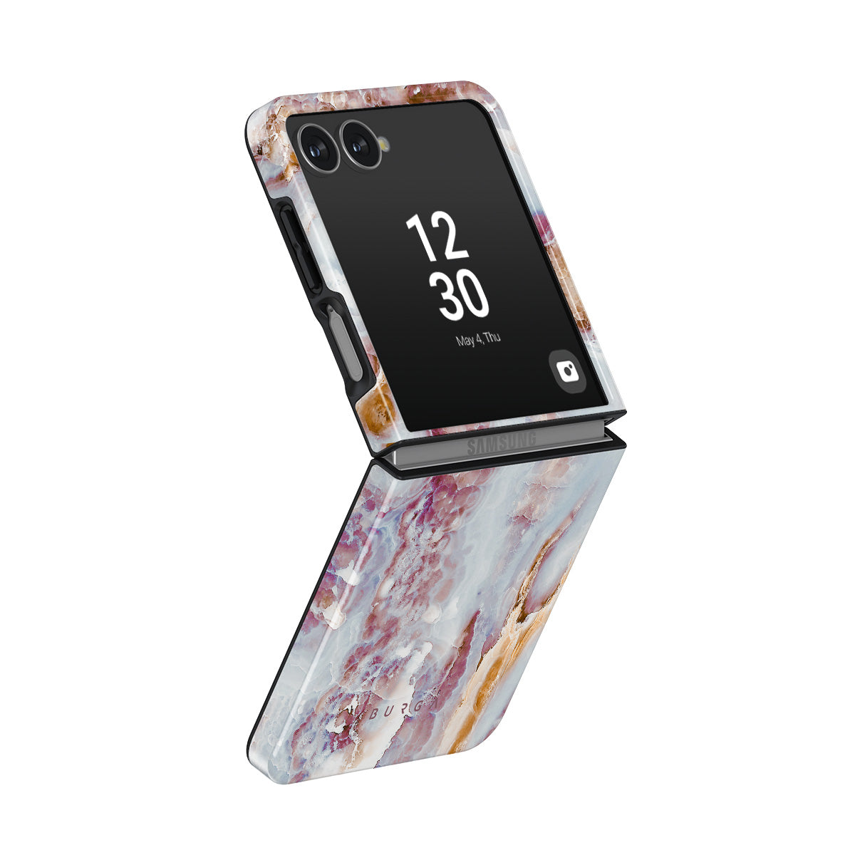 What frost can create on the surfaces is perfectly imperfect. The cute marble pattern of our hard-shell Samsung Galaxy Z Flip 7 phone case inspired by the frozen leaves adds a splash of color in a dreamy blue background, becoming a beautiful part of anyone's style.