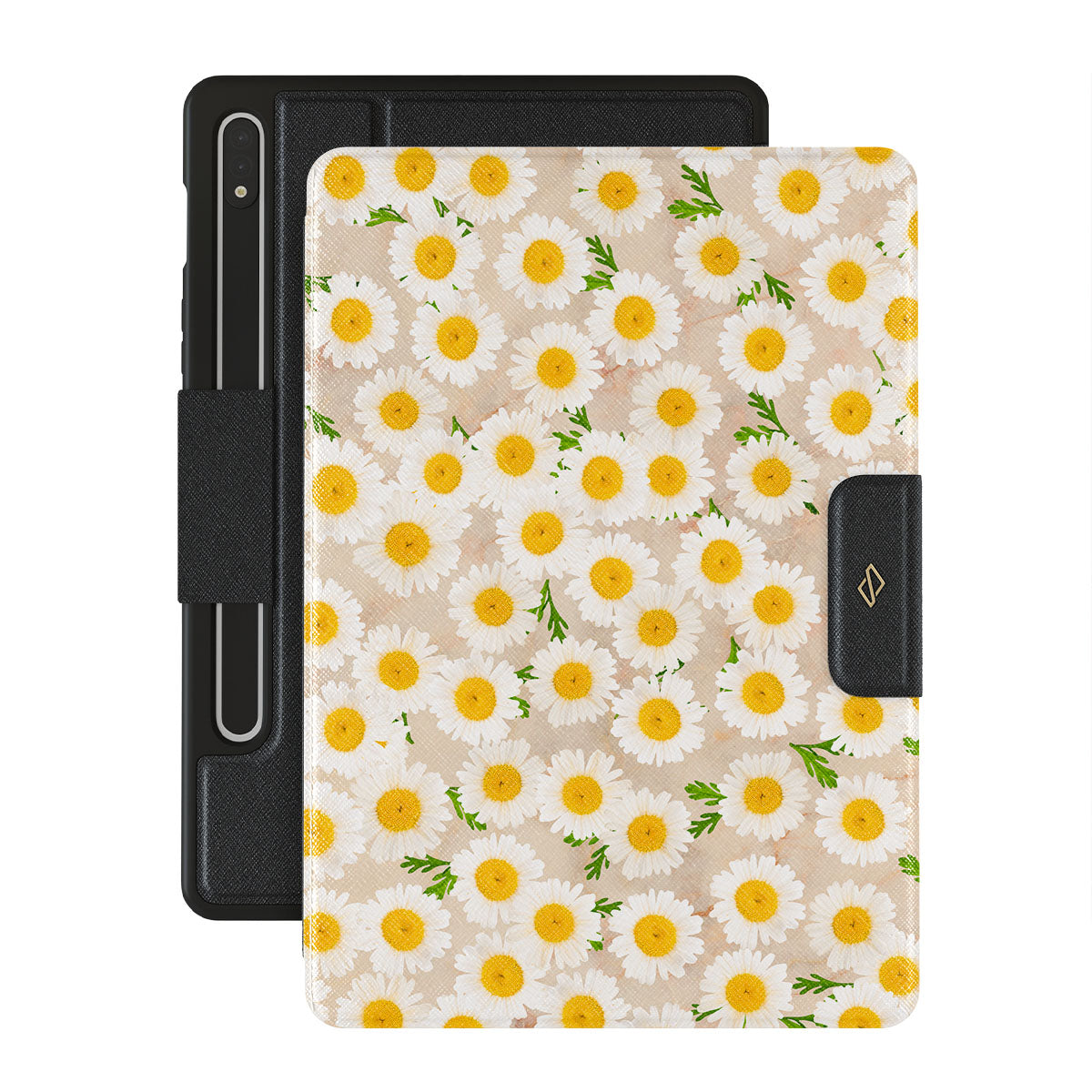 The smell of the Daisies surrounding you, memories of "Loves me, loves me not," and the smile it gives you. Feel free to look, to smell. Take this blissful moment with your daisy inspired Samsung Galaxy Tab S9 FE folio case whenever you need a little relaxation or when you want to simply enjoy the moment while protecting your Galaxy Tab.