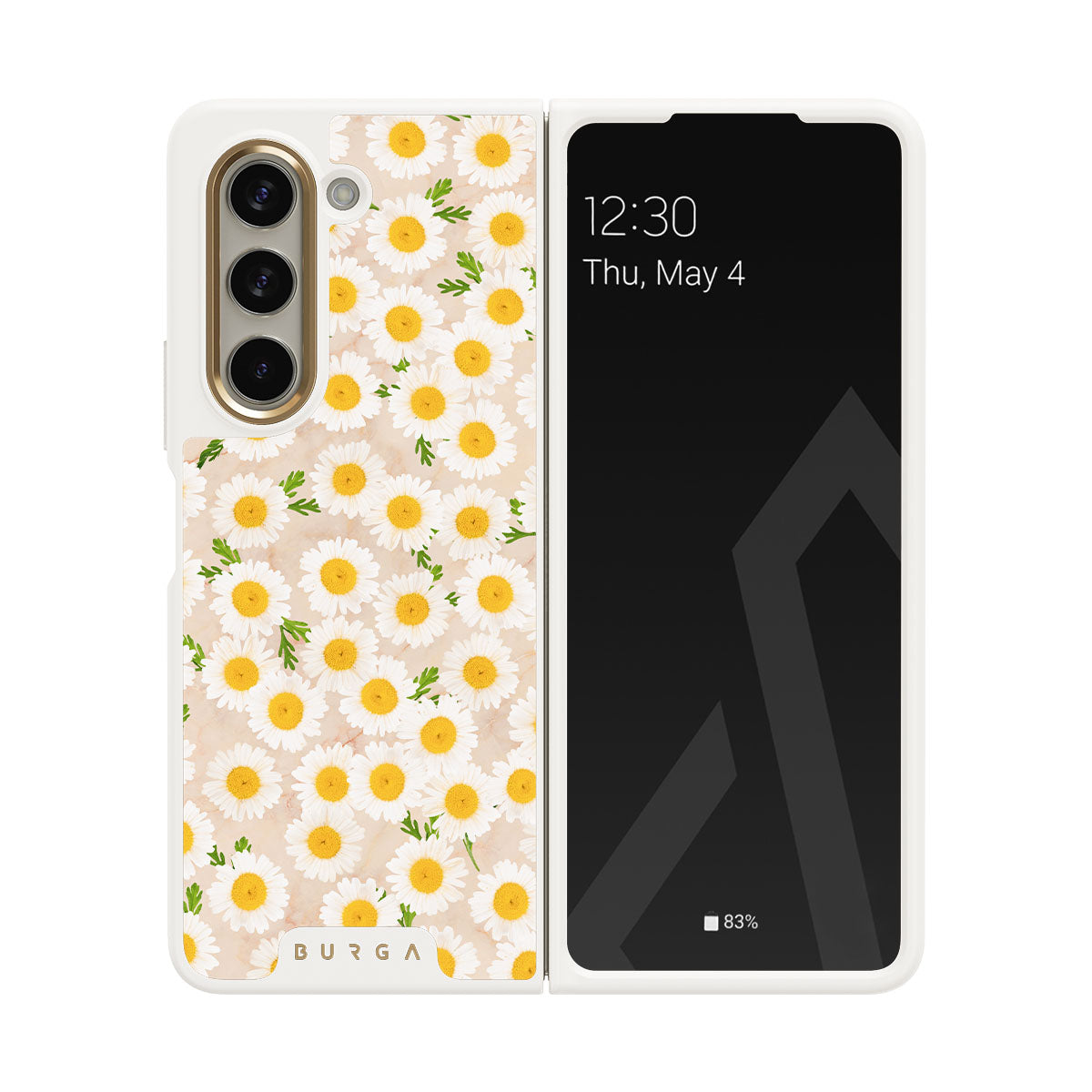The smell of the Daisies surrounding you, memories of "Loves me, loves me not," and the smile it gives you. Feel free to look, to smell. Take this blissful moment with your daisy inspired Samsung Galaxy Z Fold 5 phone case whenever you need a little relaxation or when you want to simply enjoy the moment while protecting your phone.