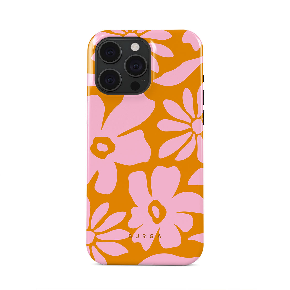Step into a world of vibrant celebration with our Daytime Fiesta. Delicate pastel pink flowers dance against a backdrop of electrifying orange, creating a captivating fusion of color. Embrace the positive energy of this beautiful design and let your iPhone 15 Pro phone case radiate the spirit of a lively fiesta wherever you go.