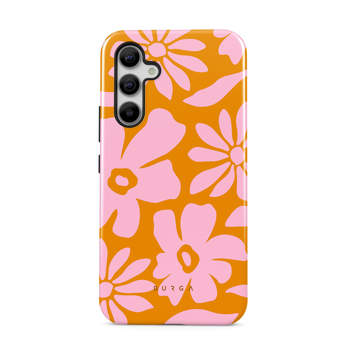 Step into a world of vibrant celebration with our Daytime Fiesta. Delicate pastel pink flowers dance against a backdrop of electrifying orange, creating a captivating fusion of color. Embrace the positive energy of this beautiful design and let your Samsung Galaxy A55 phone case radiate the spirit of a lively fiesta wherever you go.