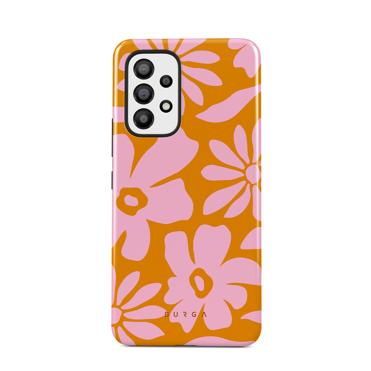 Step into a world of vibrant celebration with our Daytime Fiesta. Delicate pastel pink flowers dance against a backdrop of electrifying orange, creating a captivating fusion of color. Embrace the positive energy of this beautiful design and let your Samsung Galaxy A73 phone case radiate the spirit of a lively fiesta wherever you go.
