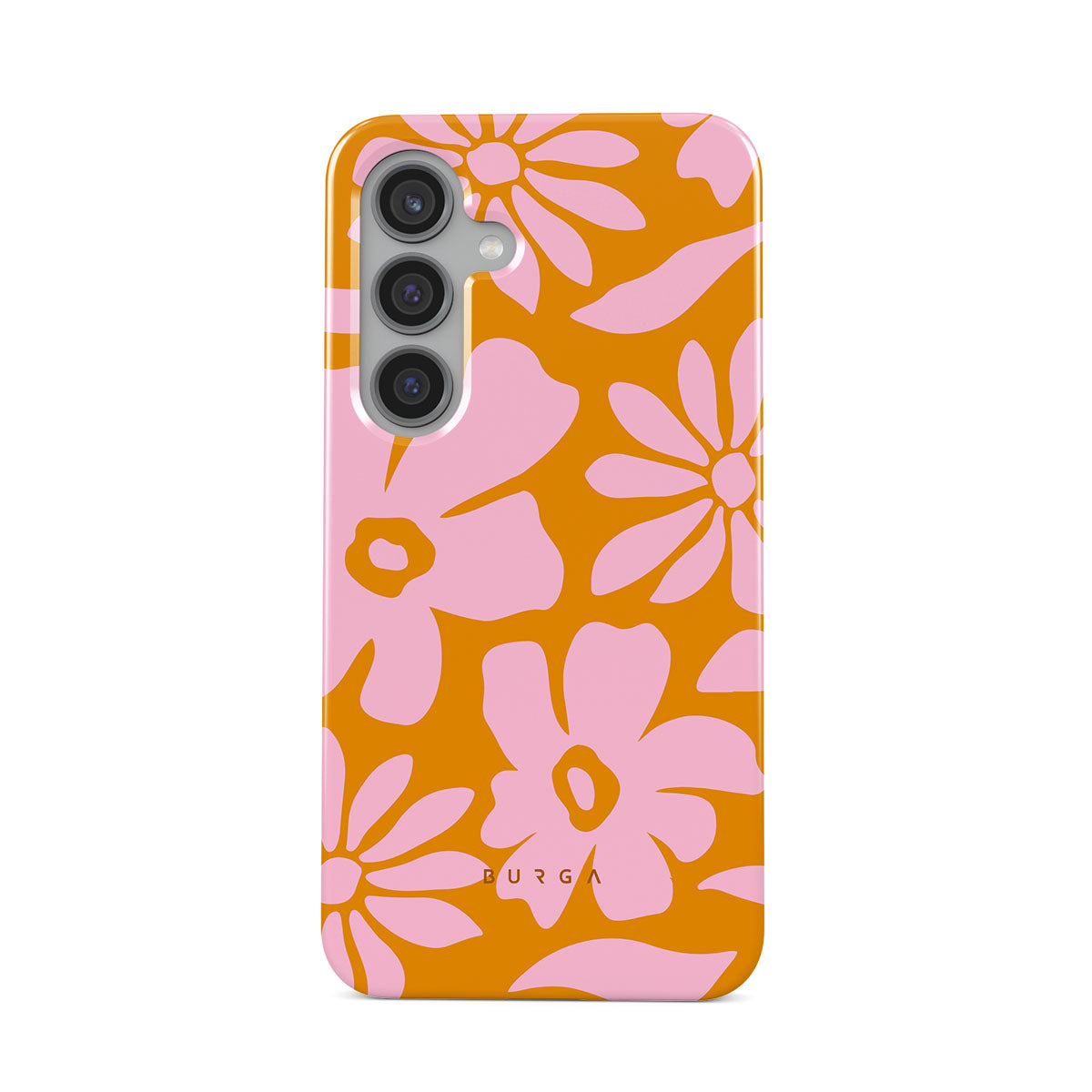 Step into a world of vibrant celebration with our Daytime Fiesta. Delicate pastel pink flowers dance against a backdrop of electrifying orange, creating a captivating fusion of color. Embrace the positive energy of this beautiful design and let your Samsung Galaxy S24 phone case radiate the spirit of a lively fiesta wherever you go.
