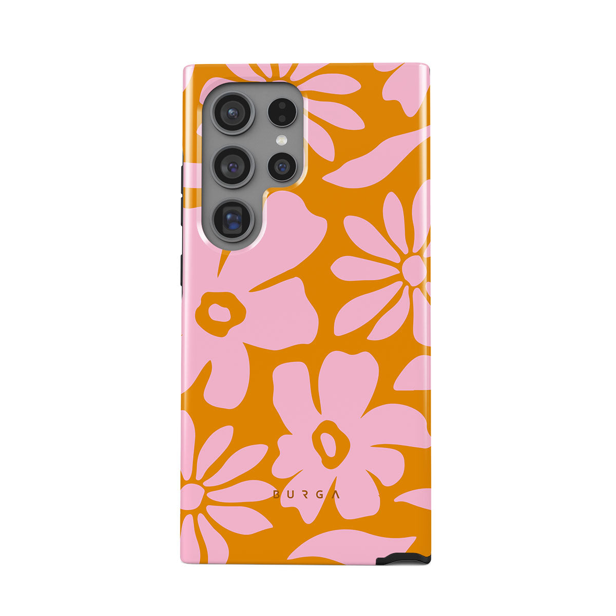 Step into a world of vibrant celebration with our Daytime Fiesta. Delicate pastel pink flowers dance against a backdrop of electrifying orange, creating a captivating fusion of color. Embrace the positive energy of this beautiful design and let your Samsung Galaxy S24 Ultra phone case radiate the spirit of a lively fiesta wherever you go.