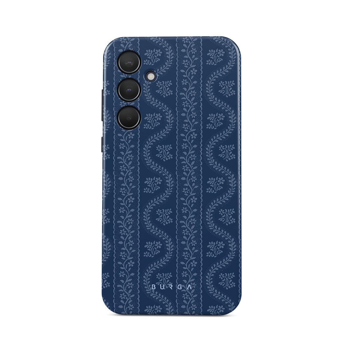 This design features: paisley, denim-inspired, vintage, classic, intricate patterns, blue tones .