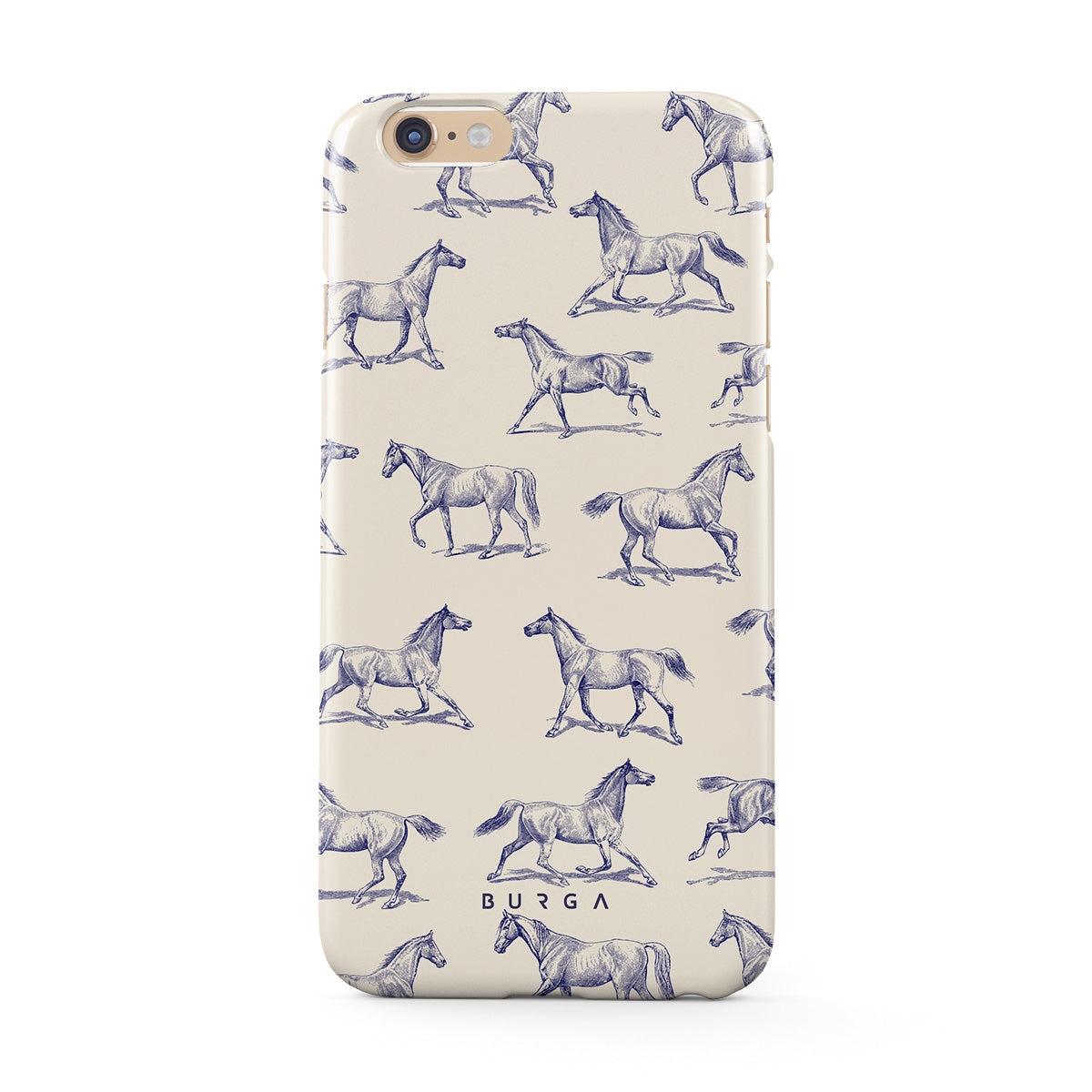 Introducing our Derby Race iPhone 6 / 6S phone case designa portrait of elegance in motion on a soft nude canvas. Engraved in delicate blue contours, galloping horses dance upon the wind, frozen in an exquisite moment of grace.
