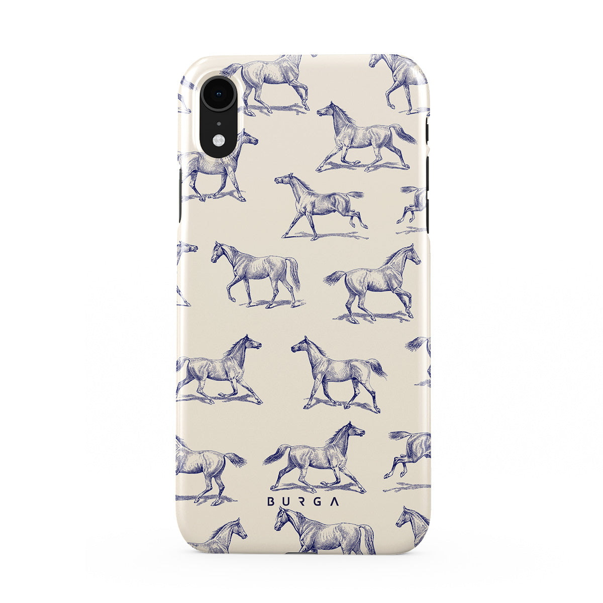 Introducing our Derby Race iPhone XR phone case designa portrait of elegance in motion on a soft nude canvas. Engraved in delicate blue contours, galloping horses dance upon the wind, frozen in an exquisite moment of grace.