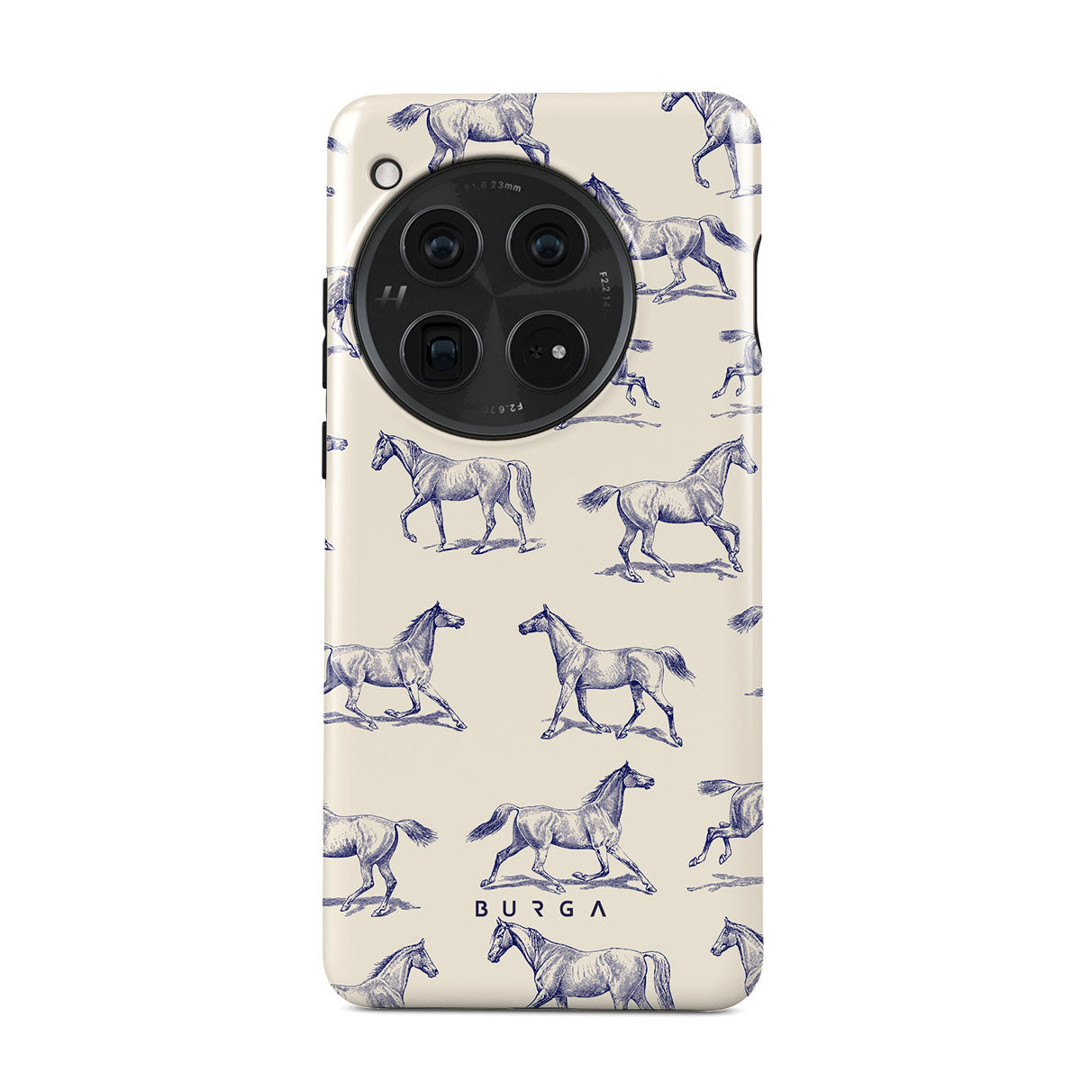 Introducing our Derby Race OnePlus 12 phone case design—a portrait of elegance in motion on a soft nude canvas. Engraved in delicate blue contours, galloping horses dance upon the wind, frozen in an exquisite moment of grace.