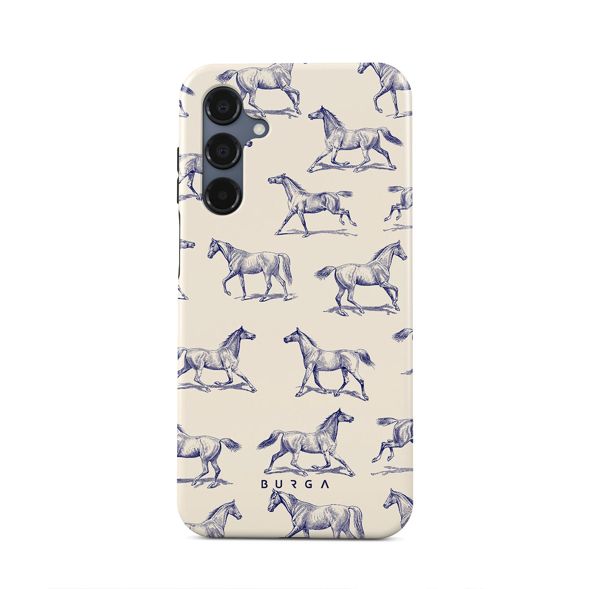 Introducing our Derby Race Samsung Galaxy A16 phone case designa portrait of elegance in motion on a soft nude canvas. Engraved in delicate blue contours, galloping horses dance upon the wind, frozen in an exquisite moment of grace.