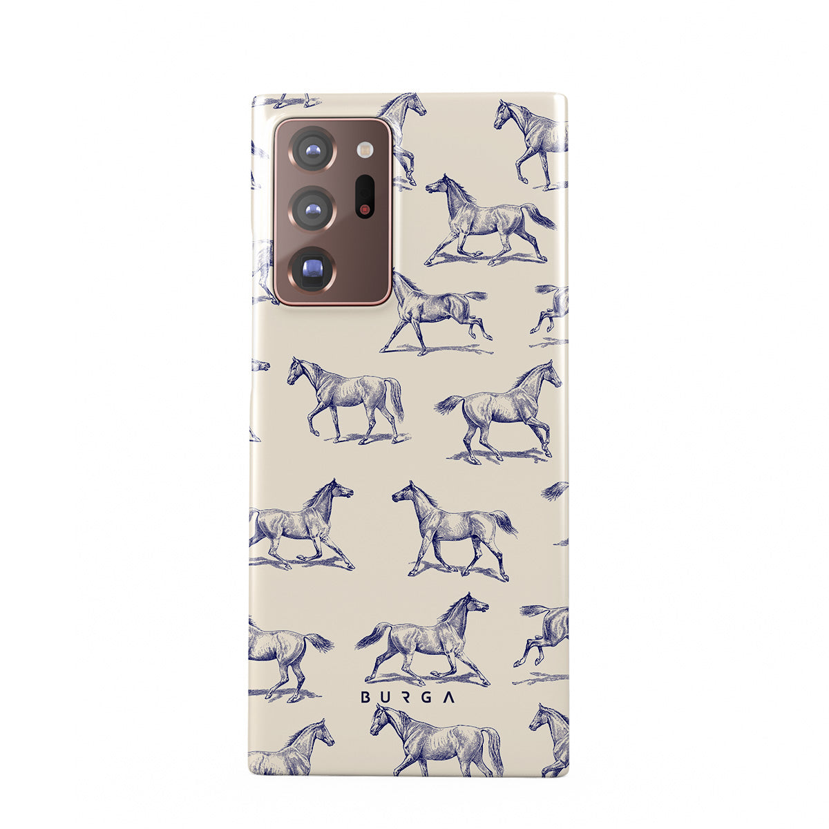 Introducing our Derby Race Samsung Galaxy Note 20 Ultra 4G / 5G phone case designa portrait of elegance in motion on a soft nude canvas. Engraved in delicate blue contours, galloping horses dance upon the wind, frozen in an exquisite moment of grace.