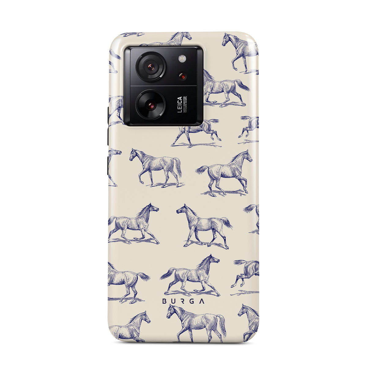 Introducing our Derby Race Xiaomi 13T Pro phone case design—a portrait of elegance in motion on a soft nude canvas. Engraved in delicate blue contours, galloping horses dance upon the wind, frozen in an exquisite moment of grace.