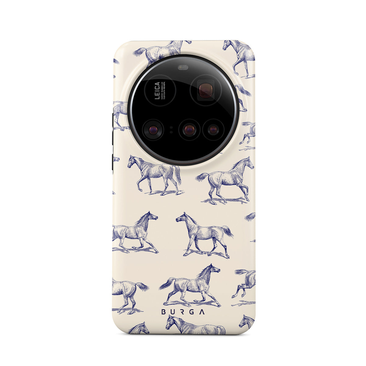 Introducing our Derby Race Xiaomi 15 Ultra phone case design—a portrait of elegance in motion on a soft nude canvas. Engraved in delicate blue contours, galloping horses dance upon the wind, frozen in an exquisite moment of grace.