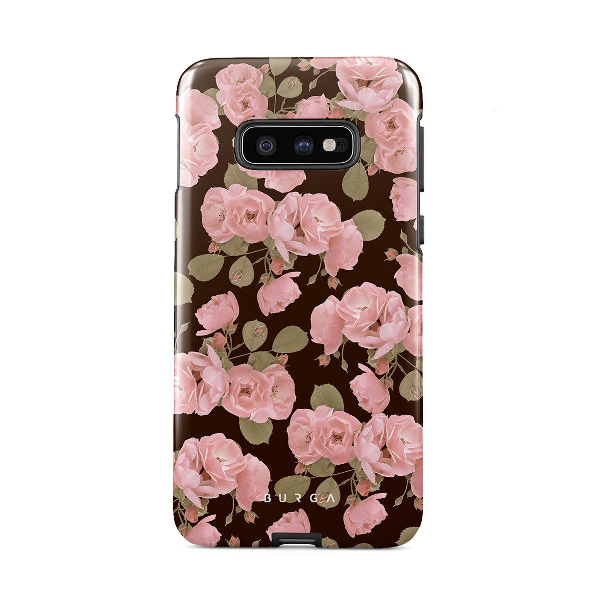 Delicate like a Desert Rose, your style blossoms in unexpected places. This striking Samsung Galaxy S10E phone case design features bold pink roses against a rich, earthy background, creating a captivating contrast. Made for those who thrive in the extraordinary and find beauty in the rugged.