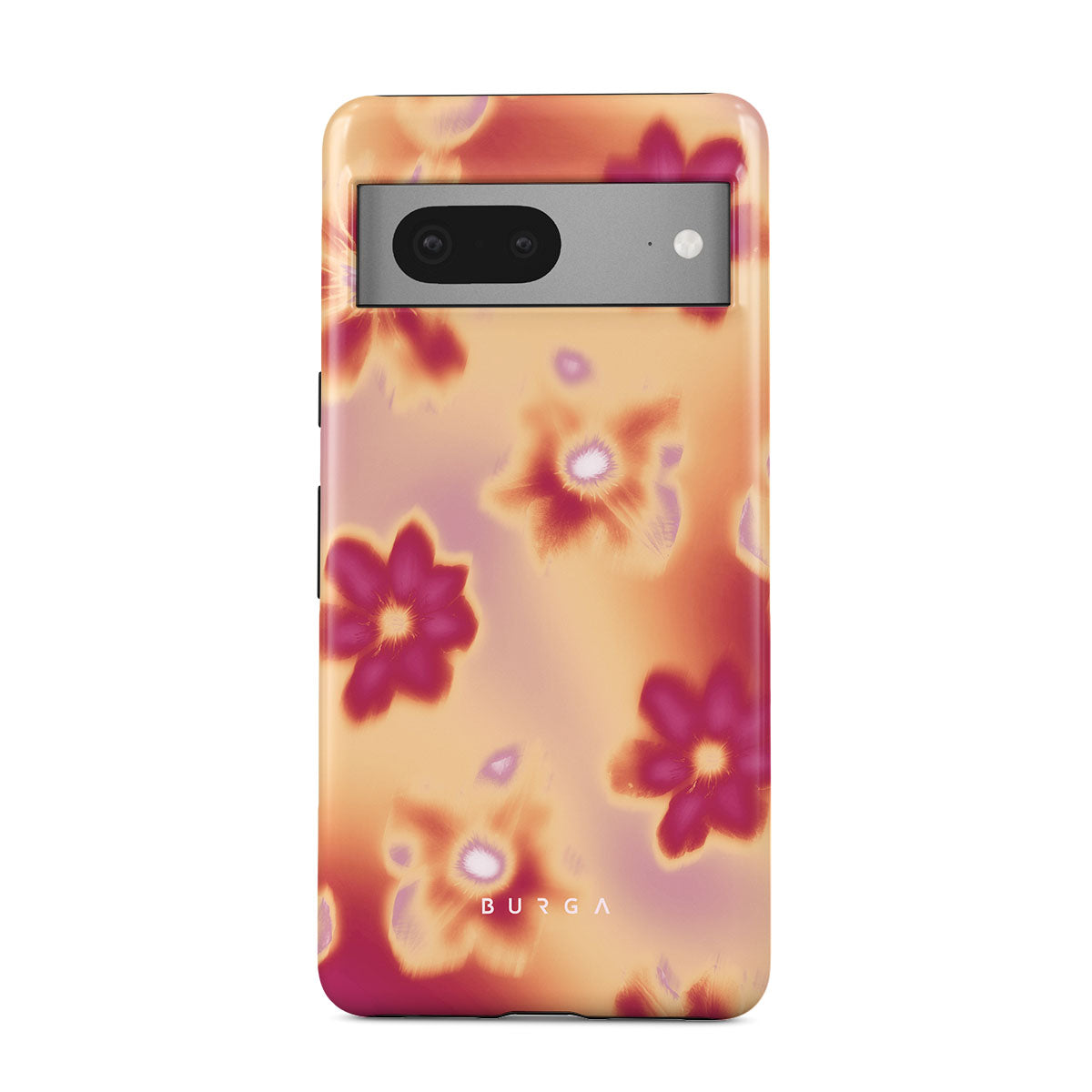 Get lost in the allure of our Divine Google Pixel 7 phone case design. Picture blossoms bathed in fiery hues of pink and orange, each seemingly charged with life's raw energy. Set against a canvas that radiates power and warmth, these flowers offer more than just beauty; they resonate with the essence that binds us all.