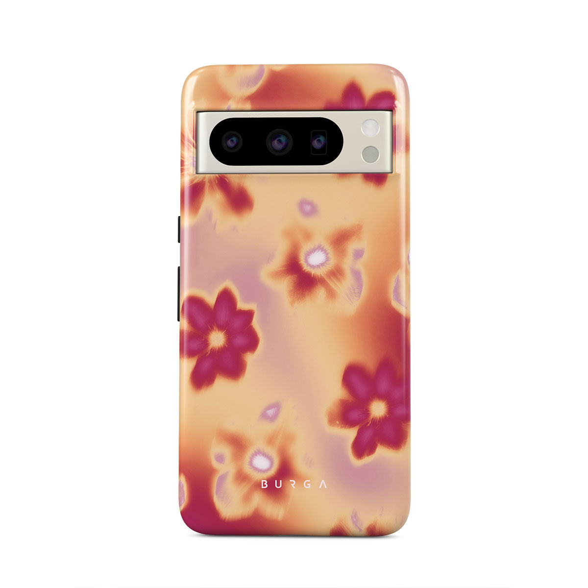 Get lost in the allure of our Divine Google Pixel 8 Pro phone case design. Picture blossoms bathed in fiery hues of pink and orange, each seemingly charged with life's raw energy. Set against a canvas that radiates power and warmth, these flowers offer more than just beauty; they resonate with the essence that binds us all.