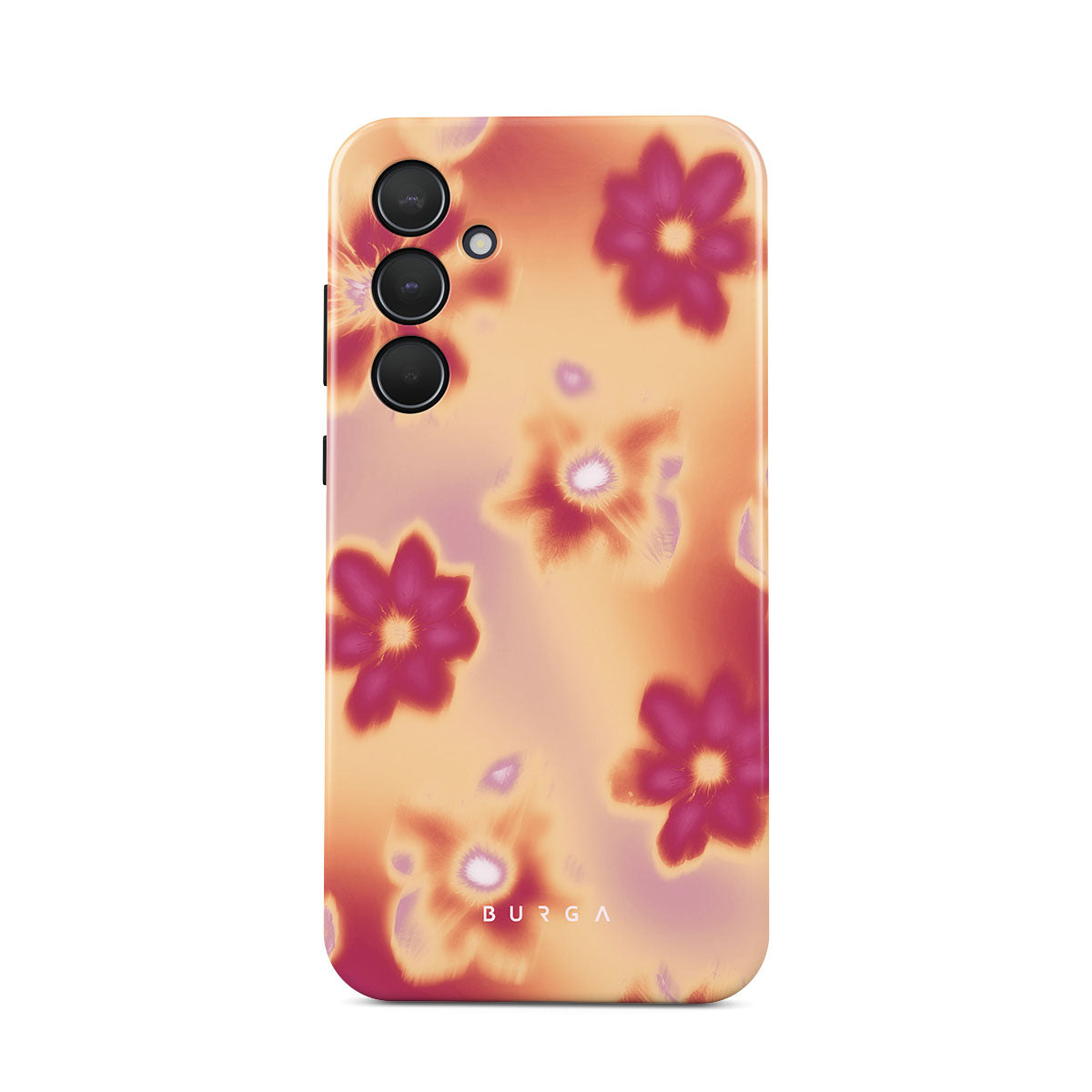 Get lost in the allure of our Divine Samsung Galaxy A35 phone case design. Picture blossoms bathed in fiery hues of pink and orange, each seemingly charged with life's raw energy. Set against a canvas that radiates power and warmth, these flowers offer more than just beauty; they resonate with the essence that binds us all.