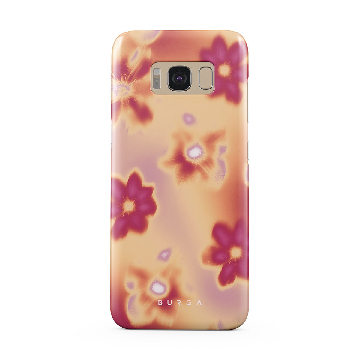 Get lost in the allure of our Divine Samsung Galaxy S8 phone case design. Picture blossoms bathed in fiery hues of pink and orange, each seemingly charged with life's raw energy. Set against a canvas that radiates power and warmth, these flowers offer more than just beauty; they resonate with the essence that binds us all.