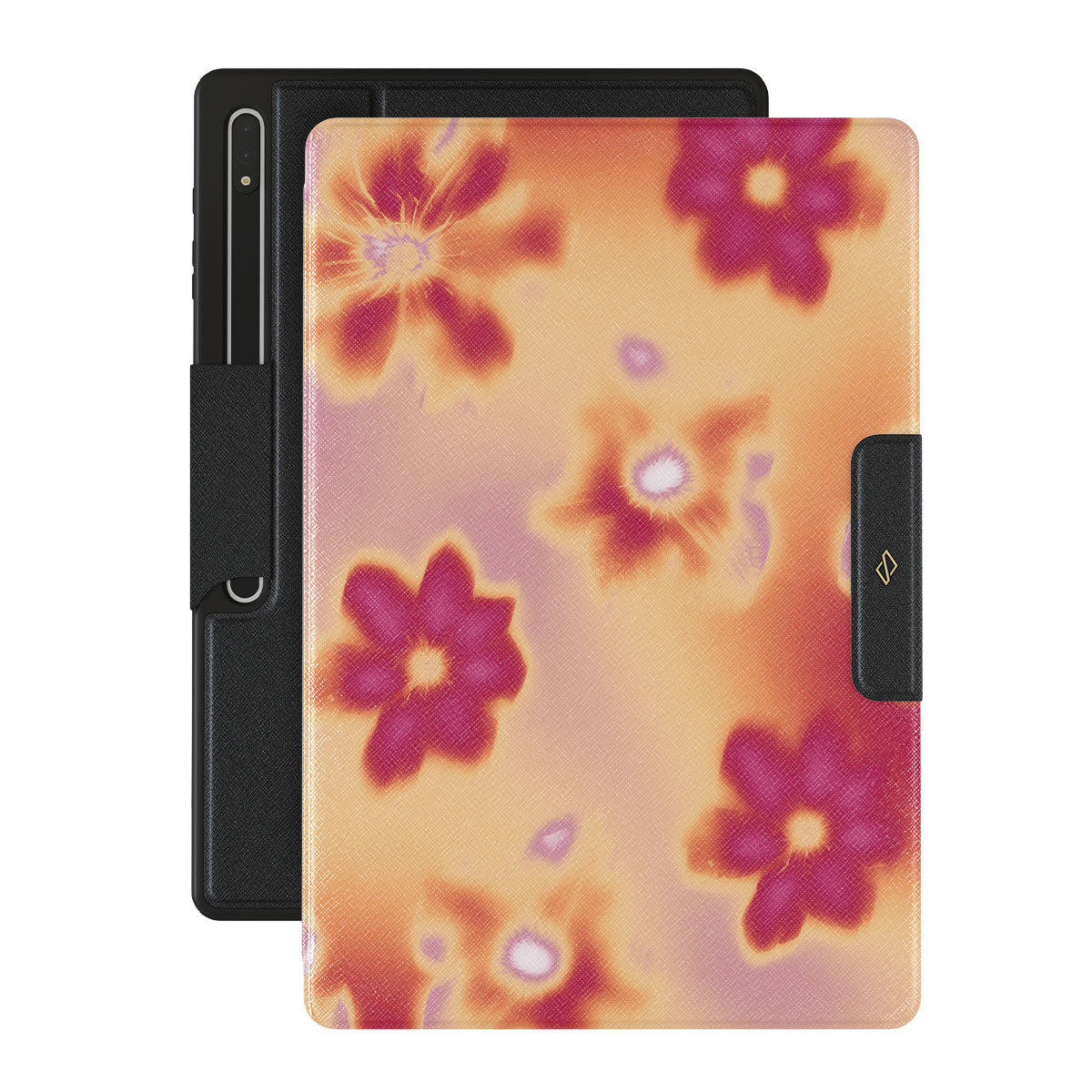 Get lost in the allure of our Divine folio case design. Picture blossoms bathed in fiery hues of pink and orange, each seemingly charged with life's raw energy. Set against a canvas that radiates power and warmth, these flowers offer more than just beauty; they resonate with the essence that binds us all.