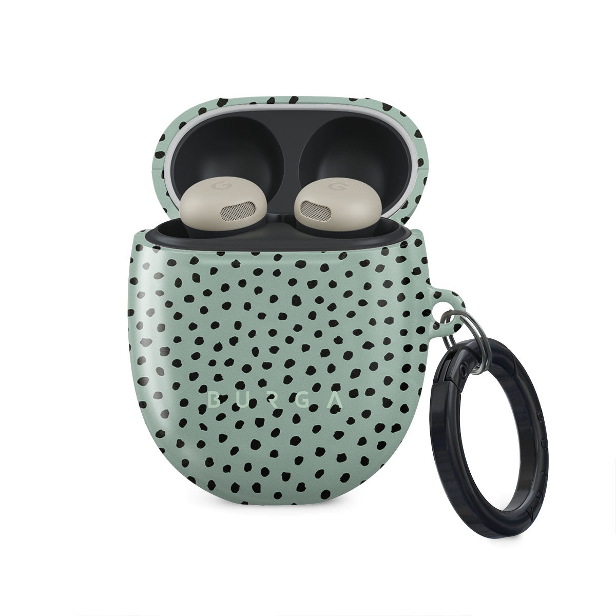 Our dotted mint green Google Pixel Buds Pro 2 Case cover will surely add a fresh feel to your outfit. Mint Gelato is a perfect dessert, and Our case with chocolate-like dots will add a summer touch to your accessory collection while keeping your Google Pixel Buds Pro 2 Case looking fresher than ever. Our case fits perfectly snug around Google Pixel Buds Pro 2 2 . “Like a glove!” one might say. And it won’t disrupt the wireless charging capabilities of the newer model. There’s even an LED light indicator to Pro 2ve it (don’t worry, wired charging still works, too). When fitted, the BURGA case will Pro 2tect the delicate Google Pixel Buds Pro 2 Case beneath it from scratches, bumps, and drops while remaining scratch-free itself. Our signature design pattern prints are High Quality, and will never peel or fade away- thanks to our unique printing technology. And finally, a handy carabiner is there to make your life easier and more convenient: just snap it around your keys or belt loop and tackle the day head-on. Your music is right there by your side when you need it.
