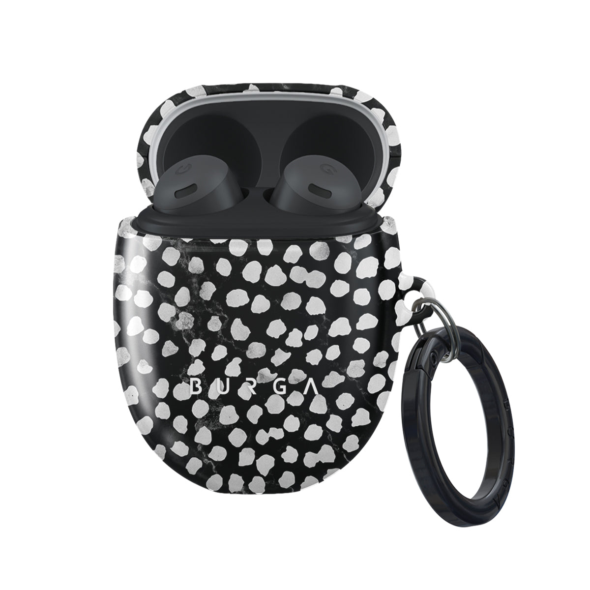 Google Pixel Buds Pro case cover and protect your device in style. Our case fits perfectly snug around Google Pixel Buds Pro . “Like a glove!” one might say. And it won’t disrupt the wireless charging capabilities of the newer model. There’s even an LED light indicator to prove it (don’t worry, wired charging still works, too). When fitted, the BURGA case will protect the delicate Google Pixel Buds Pro case beneath it from scratches, bumps, and drops while remaining scratch-free itself. Our signature design pattern prints are High Quality, and will never peel or fade away- thanks to our unique printing technology. And finally, a handy carabiner is there to make your life easier and more convenient: just snap it around your keys or belt loop and tackle the day head-on. Your music is right there by your side when you need it.