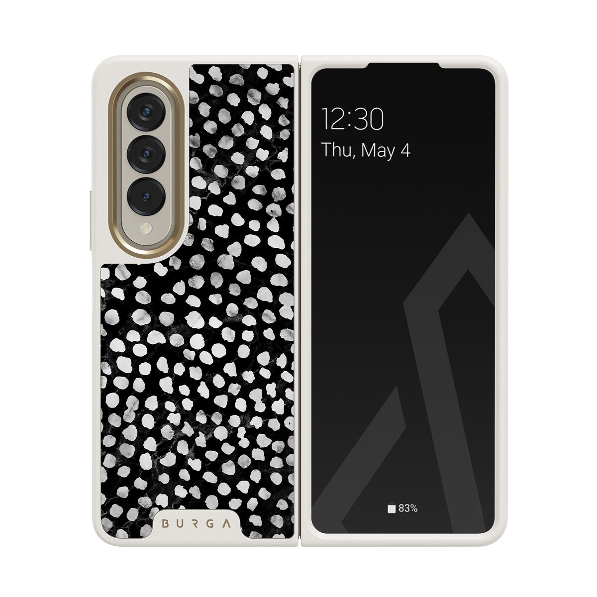Dark, endless with flickering stars. Keep a part of the night sky in your pocket with Samsung Galaxy Z Fold 4 phone case cover inspired by the sky above us. The classy dotted pattern found on the case is a must in every accessory lover's collection.