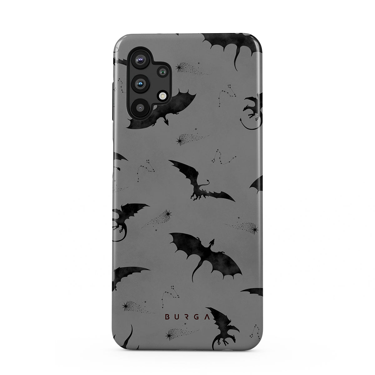 Under the dusk's veil, Draco takes flight, its bats whispering secrets to those who dare. Bold yet elusive, this Samsung Galaxy A32 5G phone case design invites you to embrace the unknown and let the wings of mystery guide your night—where will they take you?