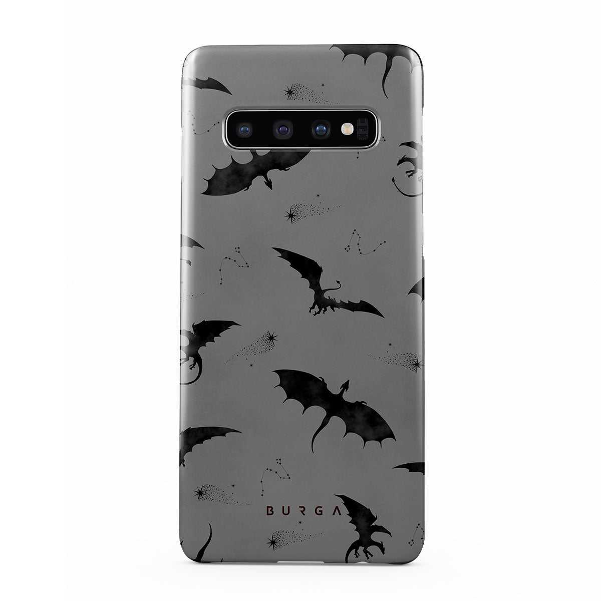 Under the dusk's veil, Draco takes flight, its bats whispering secrets to those who dare. Bold yet elusive, this Samsung Galaxy S10 Plus phone case design invites you to embrace the unknown and let the wings of mystery guide your night—where will they take you?