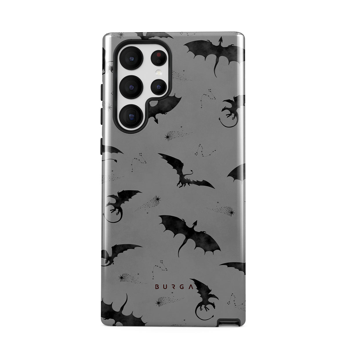 Under the dusk's veil, Draco takes flight, its bats whispering secrets to those who dare. Bold yet elusive, this Samsung Galaxy S22 Ultra phone case design invites you to embrace the unknown and let the wings of mystery guide your night—where will they take you?