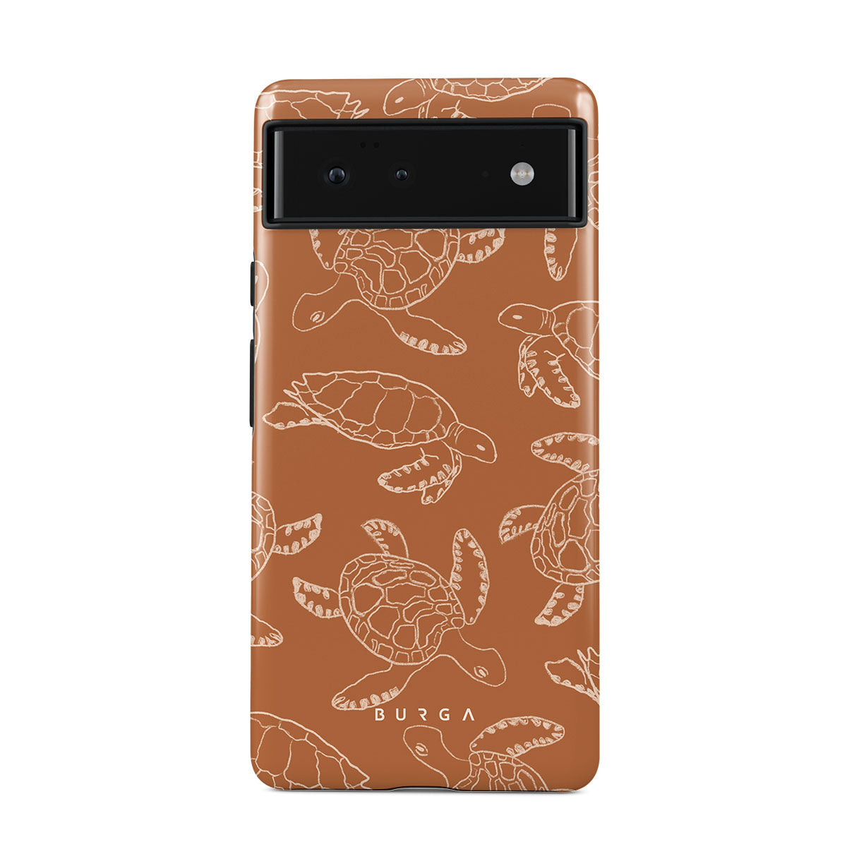 Step into a world of pure bliss and turtle magic with our Earth Shell design. The rich earth tones creating a calming ambiance blend beautifully with the playful turtles floating into adventure. Embark on a thrilling escapade to reconnect with nature with our Earth Shell Google Pixel 6 case.