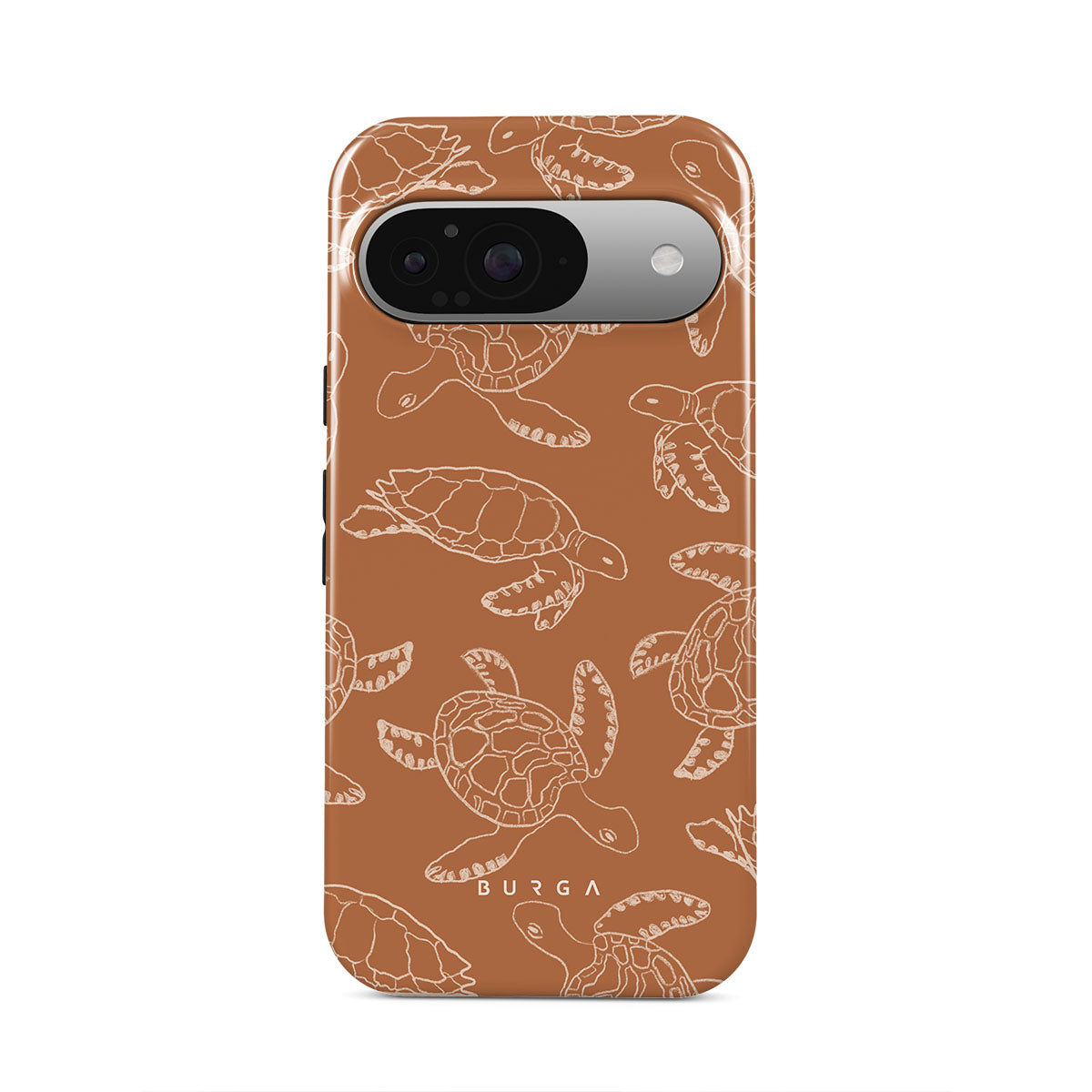 Step into a world of pure bliss and turtle magic with our Earth Shell design. The rich earth tones creating a calming ambiance blend beautifully with the playful turtles floating into adventure. Embark on a thrilling escapade to reconnect with nature with our Earth Shell Google Pixel 9 Case.