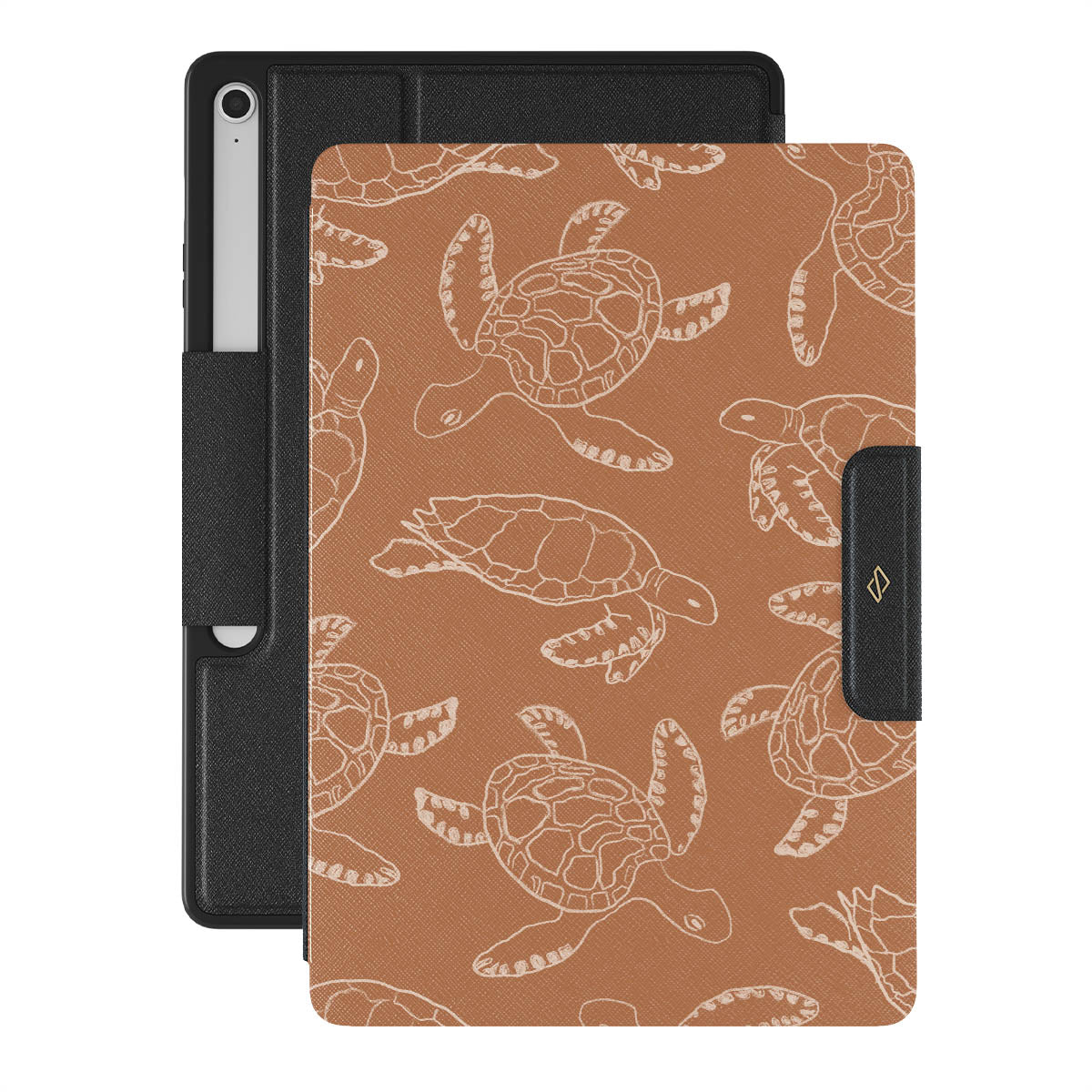 Step into a world of pure bliss and turtle magic with our Earth Shell design. The rich earth tones creating a calming ambiance blend beautifully with the playful turtles floating into adventure. Embark on a thrilling escapade to reconnect with nature with our Earth Shell Samsung Galaxy Tab S10+ FE folio case.