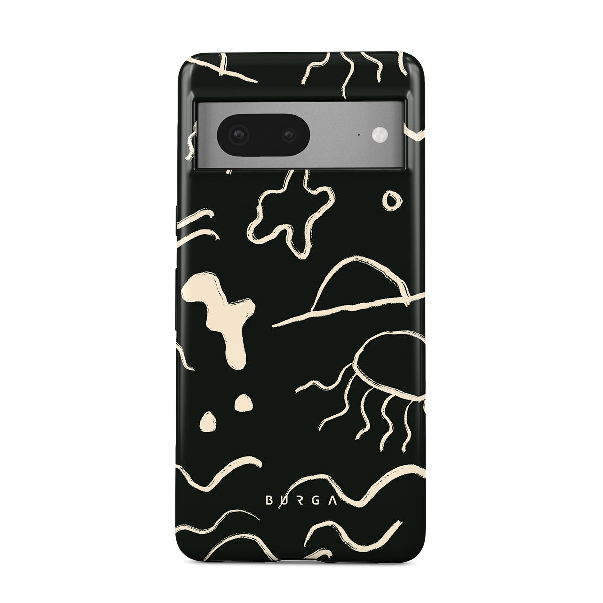Our Eclipse Google Pixel 7 design reflects the enigmatic beauty of the ocean during a solar eclipse. The dark hues and bright accents represent how the light dances on the water, while the waves and jellyfish capture the serene yet dynamic nature of the ocean.