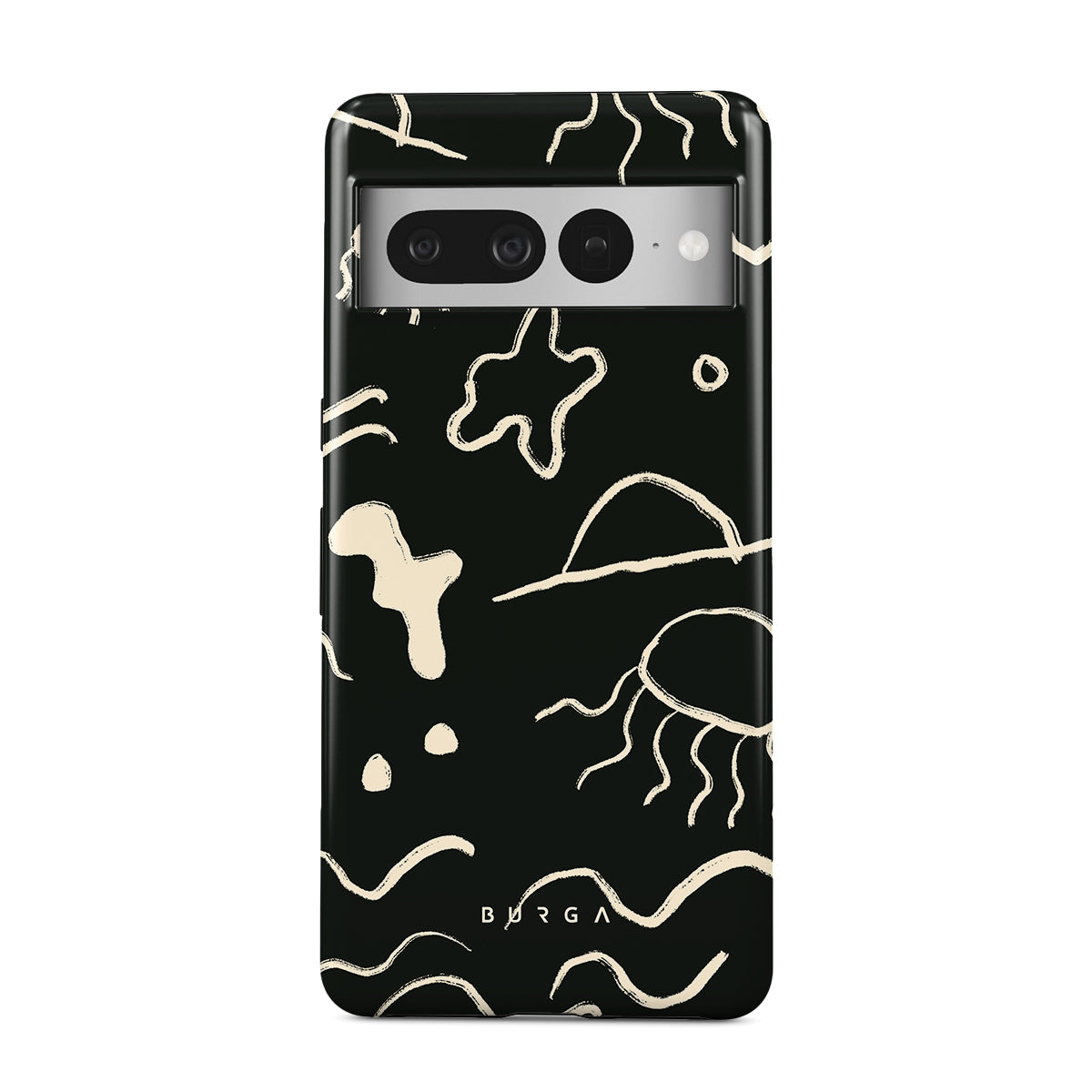Our Eclipse Google Pixel 7 Pro design reflects the enigmatic beauty of the ocean during a solar eclipse. The dark hues and bright accents represent how the light dances on the water, while the waves and jellyfish capture the serene yet dynamic nature of the ocean.