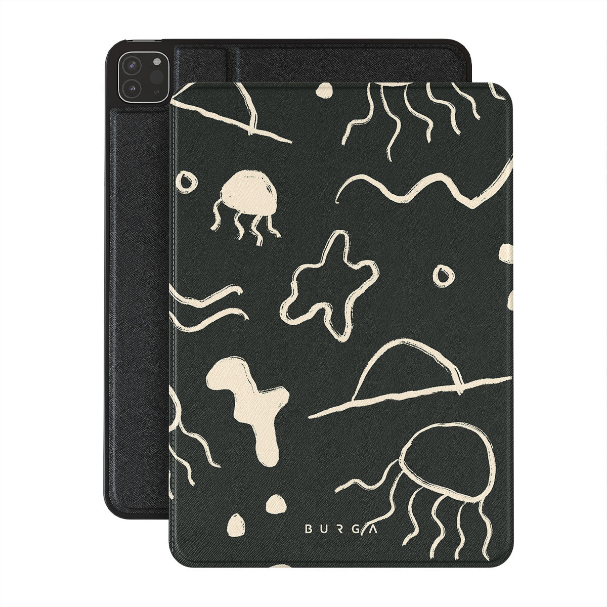 Our Eclipse iPad Pro 12.9 (4th/3rd Gen) folio case reflects the enigmatic beauty of the ocean during a solar eclipse. The dark hues and bright accents represent how the light dances on the water, while the waves and jellyfish capture the serene yet dynamic nature of the ocean.