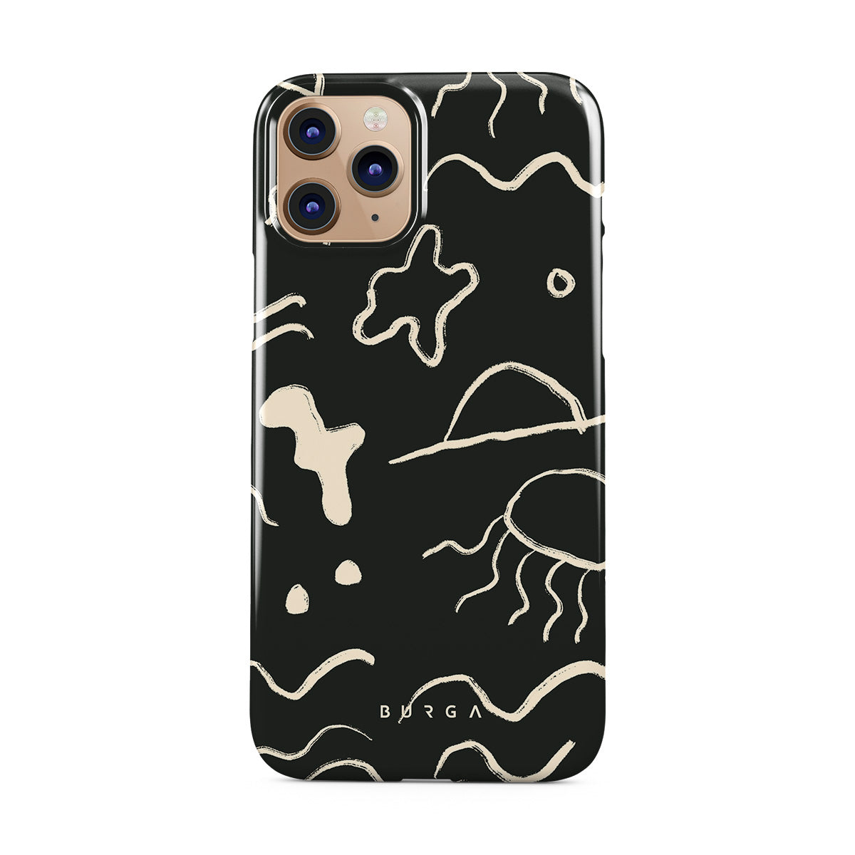 Our Eclipse iPhone 11 Pro Max design reflects the enigmatic beauty of the ocean during a solar eclipse. The dark hues and bright accents represent how the light dances on the water, while the waves and jellyfish capture the serene yet dynamic nature of the ocean.
