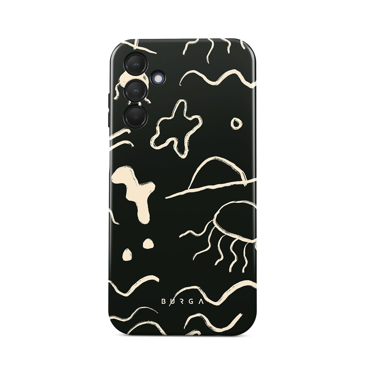 Our Eclipse Samsung Galaxy A15 4G / 5G design reflects the enigmatic beauty of the ocean during a solar eclipse. The dark hues and bright accents represent how the light dances on the water, while the waves and jellyfish capture the serene yet dynamic nature of the ocean.