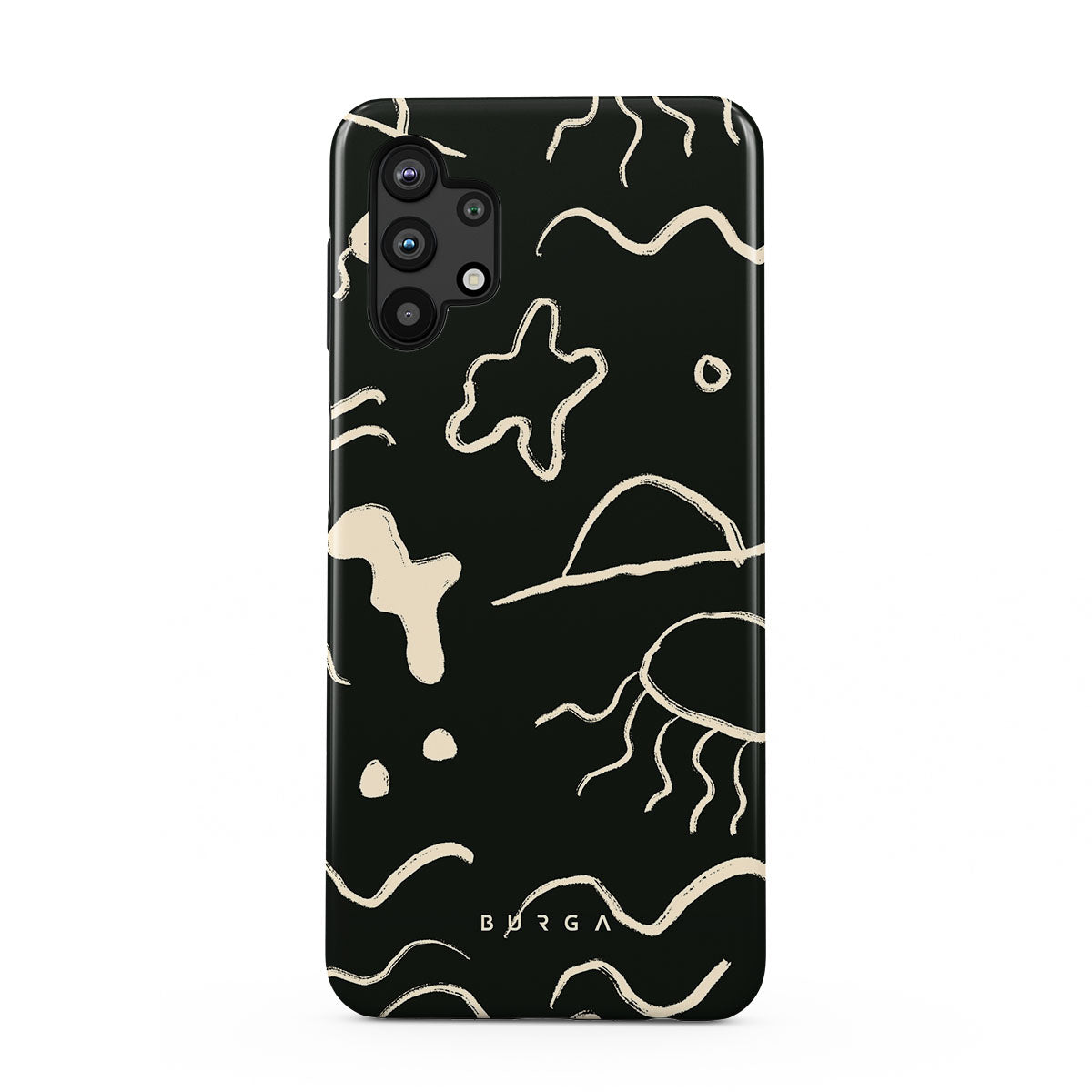 Our Eclipse Samsung Galaxy A32 5G design reflects the enigmatic beauty of the ocean during a solar eclipse. The dark hues and bright accents represent how the light dances on the water, while the waves and jellyfish capture the serene yet dynamic nature of the ocean.